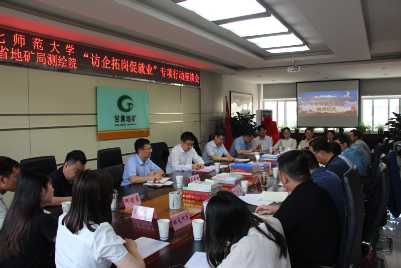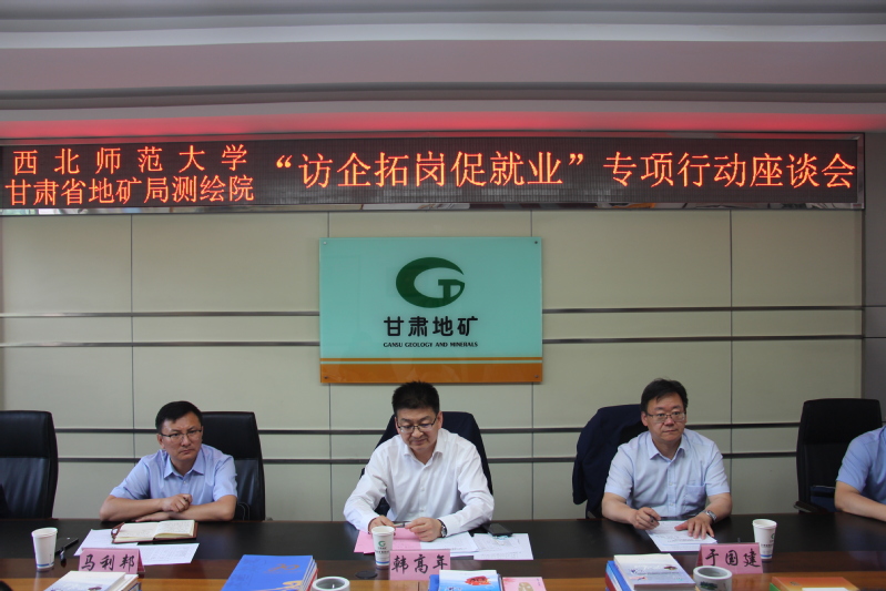 韩高年副校长介绍了我校“访企拓岗促就业专项行动”的背景、内容和工作安排,同时对近年来甘肃省地矿局及其测绘勘查院在学生就业、人才培养等方面给予的大力支持表示感谢。他指出,就业是民生之本,是高校毕业生最大的民生。他希望双方充分发挥各自资源优势,进一步深化人才培养、科学研究等方面的广泛交流和务实合作,积极拓展校(院)企产研合作新模式,健全供需对接就业育人新机制,探索培育高校学生就业新空间,为毕业生挖掘更多的实习机会和岗位资源,稳步推动双方实现优势互补、互利共赢、共享发展。