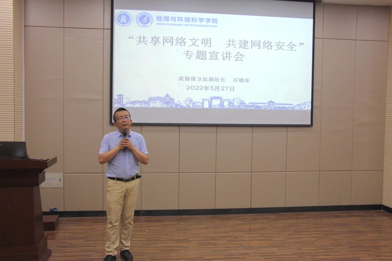 为切实做好和加强师生防范电信网络诈骗宣传工作,5月27日下午,学校武装保卫处副处长石晓东应邀在知行校区特教楼159报告厅为我院师生开展题为“共享网络文明 共建网络安全”的专题宣讲。学院党委书记于国建、院长马利邦、党委副书记陈建海、副处级辅导员杜波、专职辅导员及学院部分学生共计150余人参加宣讲会。宣讲会由学院团委书记曹珍璇主持。
