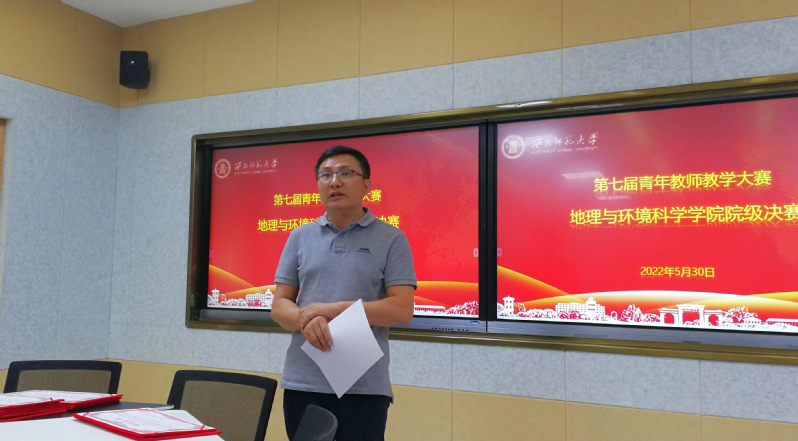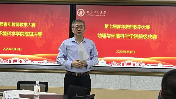 2022年5月30日19:30-22:30,437bwin必赢国际官网在文科实训楼201举办“437bwin必赢国际官网第七届青年教师教学大赛”院级复赛。比赛邀请校教学督导委员会马正学教授担任评委会主席,地环学院院长马利邦、地环学院教学督导委员会委员赵军、辛存林、张松林、张学斌、胡梦珺担任评委会委员;地环学院党委书记于国建、学院全体青年教师、部分研究生及本科生观摩了本次比赛。比赛由地环学院副院长胡梦珺主持。