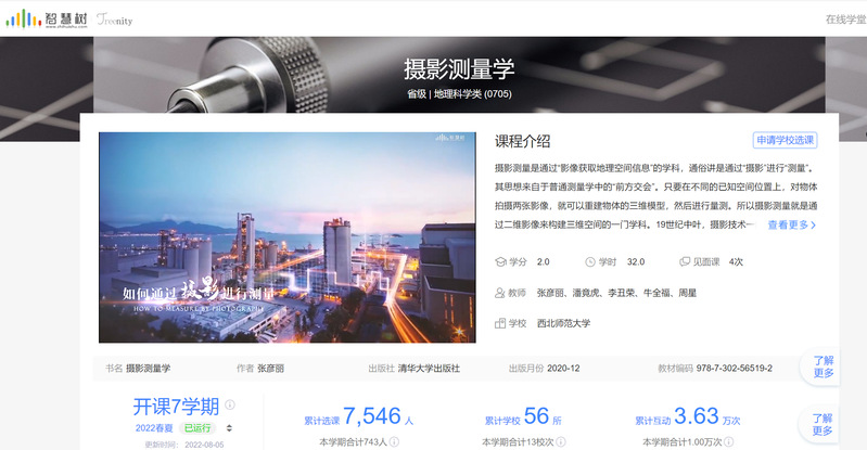 《摄影测量学》慕课在中国大学MOCC平台、智慧树平台、学银在线平台同时开课。 智慧树平台链接: