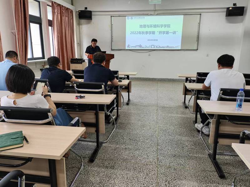 首先,在中秋节、教师节双节来临之际,于国建代表学院向全体教职工致以节日的问候,也向刚刚加入地环学院大家庭的新同事表示了热烈的欢迎。随后,于国建传达了学校“2022年安全工作委员会(扩大)会议”、学校“2022年秋季学期工作安排会”以及学院党政联席会议暨安全工作会议精神,传达了中国共产党甘肃省第十四次代表大会精神,组织全体教职工重温了《高等学校教师职业道德规范》《新时代高校教师职业行为十项准则》等文件。