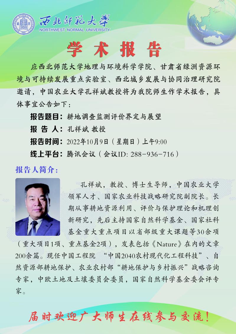 地环学院前沿学术报告 2022-12期:耕地调查监测评价界定与展望