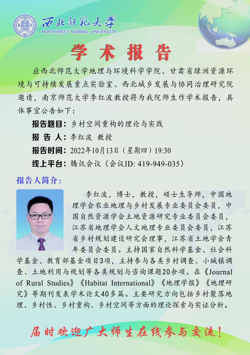 地环学院前沿学术报告 2022-15期:乡村空间重构的理论与实践