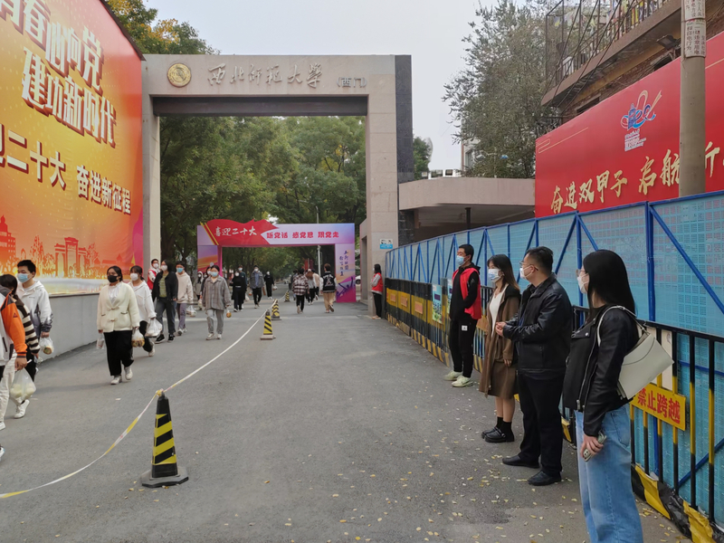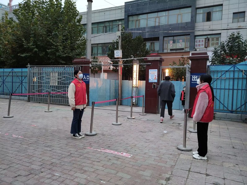 10月25日清晨,天刚蒙蒙亮,寒风料峭,志愿者们的热情只增不减。他们早早来到兰天公寓东门前,身穿红马甲,佩戴口罩,在辅导员老师的叮嘱下迅速前往各自的值班点开展引导工作。“同学,请佩戴好口罩”“同学,请间隔一米前往餐厅取餐”,颤抖的也许是冷风中的声音,坚定不移的是坚决做好校园防疫工作的心。在同学们购买早餐的时间,志愿者们及时疏散前往餐厅取餐的人流量,减少人员密集接触,弘扬志愿服务精神,切实做到为同学们服务,为助力校园防疫工作高效进行奉献自己的一份力量。