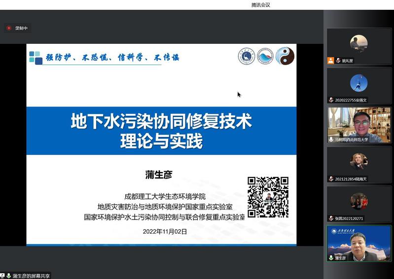 2022年11月2日,应437bwin必赢国际官网437bwin必赢国际官网、甘肃省绿洲资源环境与可持续发展重点实验室、西北城乡发展与协同治理研究院邀请,成都理工大学蒲生彦教授做了题为《地下水污染协同修复技术理论与实践》的学术报告,报告会由437bwin必赢国际官网院长马利邦主持,学院教师、研究生,以及国内其他高校相关专业共300余名师生线上参加了本次报告。