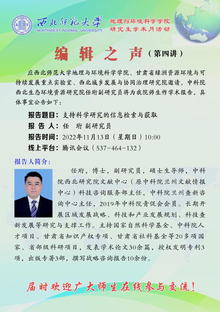 地环学院研究生学术月活动系列之一——编辑之声:04 支持科学研究的信息检索与获取