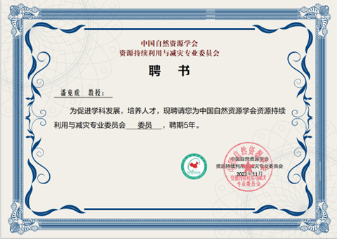 2022年11月19日,中国自然资源学会资源持续利用与减灾专业委员会换届会议在线上成功举行。本次会议是依据中国自然资源学会《关于同意资源持续利用与减灾专业委员会换届选举的批复》召开的。中国自然资源学会理事长成升魁研究员、副秘书长王捷出席了会议,来自全国各地的近百名代表参加了会议。在换届会议上,经无记名投票,选举产生了专委会主任、副主任、秘书长、副秘书长和委员。北京师范大学何春阳教授当选为专委会主任,学院马利邦教授、潘竟虎教授当选为委员,聘期5年。