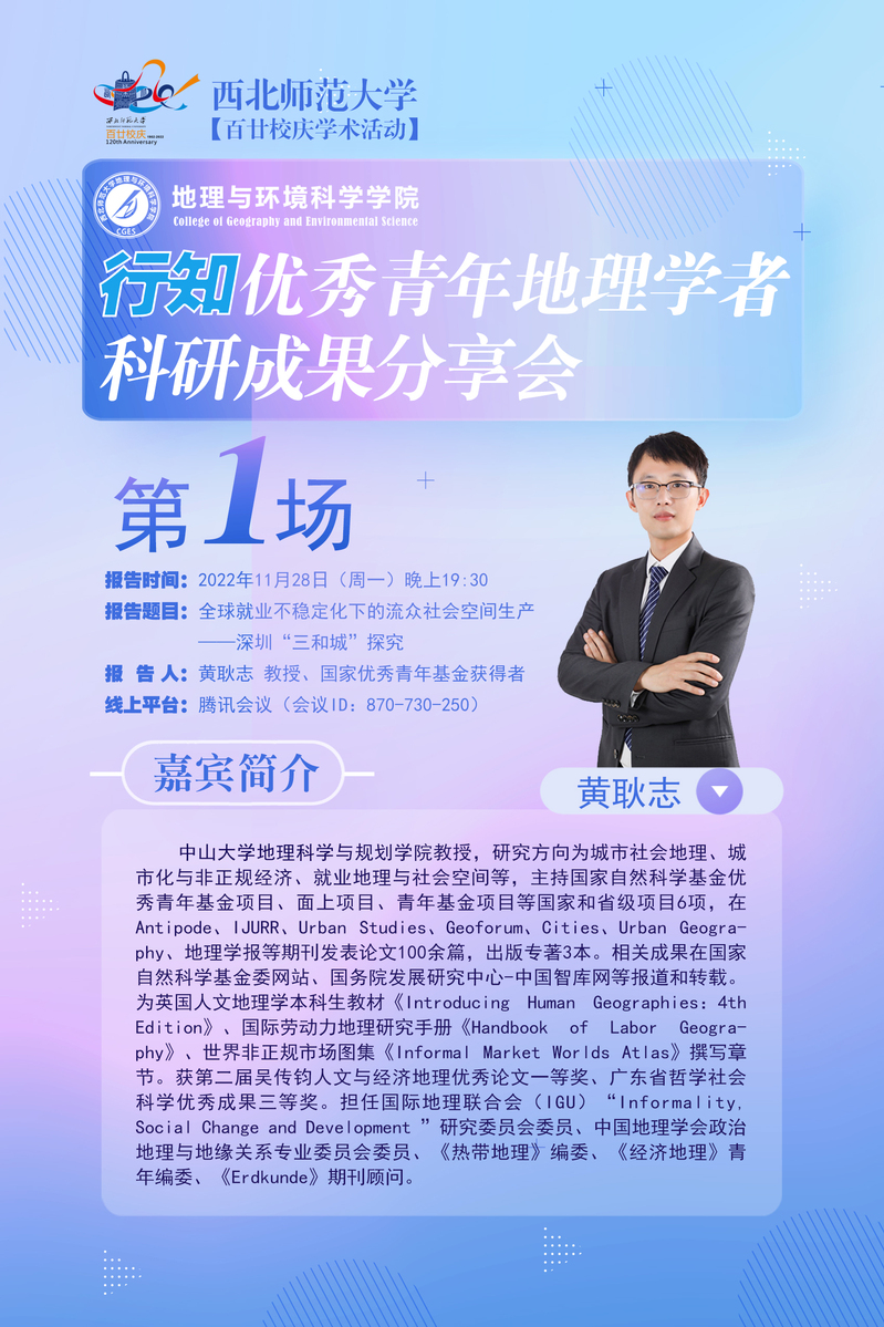 地环学院行知优秀青年地理学者科研成果分享会 第1场:全球就业不稳定化下的流众社会空间生产——深圳“三和城”探究