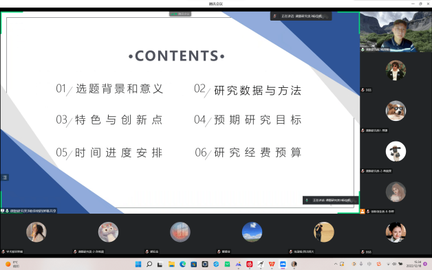 本次立项评审分为线上盲审和线上答辩两个环节。在线上盲审阶段,评委老师根据项目研究内容、研究方法、技术路线等进行匿名评分,并对评分较低的项目予以淘汰;在线上答辩阶段,项目申报人以PPT的形式,从项目创新性、可行性、预期成果及未来展望等多个方面进行展示,评委老师们围绕项目进行提问,并针对项目存在的问题提出了指导性意见。