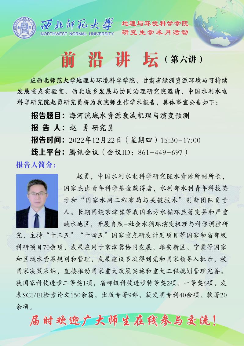 地环学院研究生学术月活动系列之三——前沿讲坛:06 海河流域水资源衰减机理与演变预测