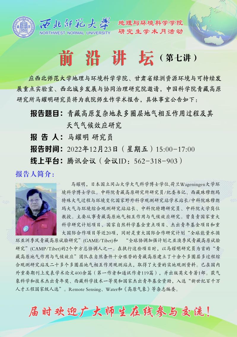 地环学院研究生学术月活动系列之三——前沿讲坛:07 青藏高原复杂地表多圈层地气相互作用过程及其天气气候效应研究