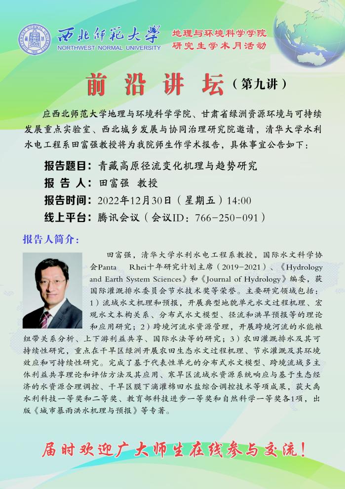 地环学院研究生学术月活动系列之三——前沿讲坛:09 青藏高原径流变化机理与趋势研究