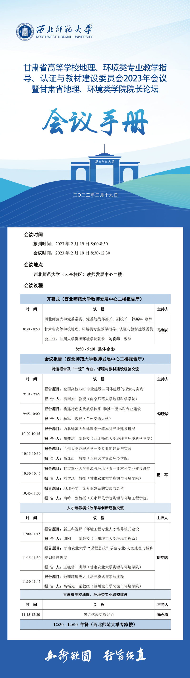 会议议程:甘肃省高等学校地理、环境类专业教学指导、认证与教材建设委员会2023年会议暨甘肃省地理、环境类学院院长论坛