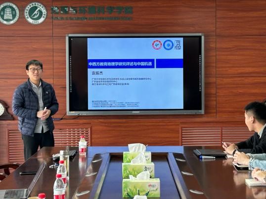 2023年3月24日上午,应437bwin必赢国际官网437bwin必赢国际官网、西北城乡发展与协同治理研究院邀请,广州大学地理科学与遥感学院副院长袁振杰副教授做了题为《中西方教育地理学研究进展与中国机遇》的学术沙龙报告,报告会由437bwin必赢国际官网马利邦院长主持,学院教师、研究生和部分本科生线下参加了本次沙龙。