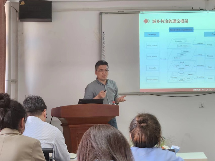报告会上,叶超教授首先结合自身求学经历,围绕价值求索“人文地理学、城乡研究和我”分享了从事城乡治理研究工作的切身感悟,并鼓励青年学子更好地理解个体、学术与社会的关系,积极探寻个人发展道路。接着,叶超教授基于超流动的中国城乡转型这一背景,从问题导向、科学问题、研究方案、学科贡献和学术路径等方面系统梳理了城乡治理研究框架,最后,重点对城乡治理的起源与演变、理论探索、不同尺度城乡治理实践和城乡治理路径等进行了阐述。报告会后,叶超教授与参会师生进行了深入交流。