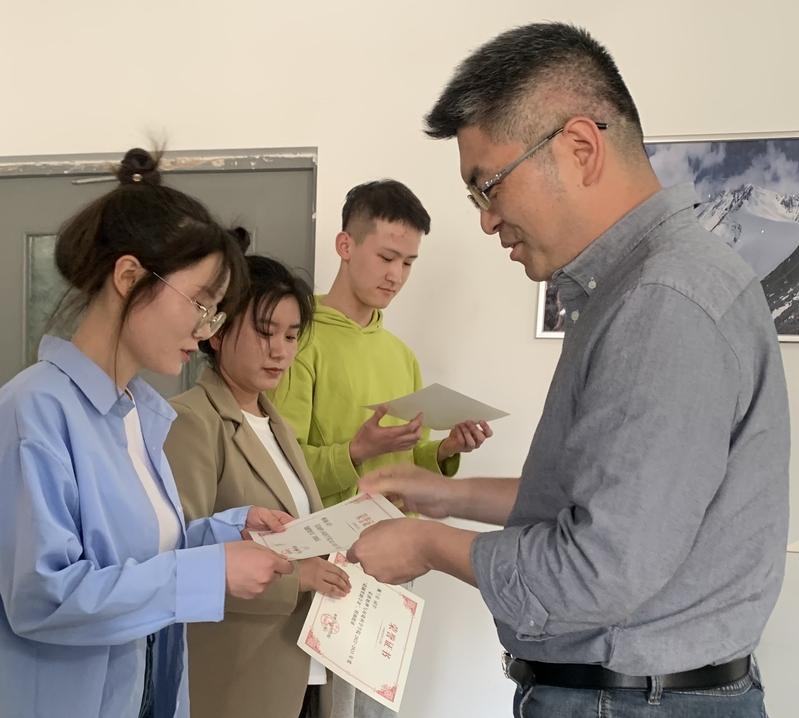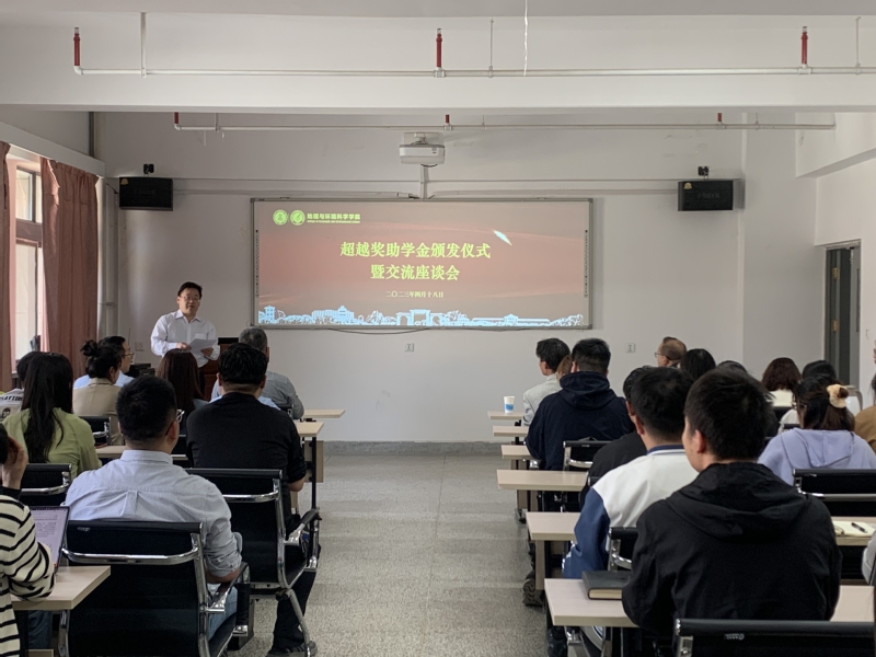 叶超教授为获得“超越奖助学金”的八位学生代表颁发了奖状,勉励获奖学生一是要结合自身学习成长历程,敢于超越、追求超越;二是要结合科研工作的亲身经历,脚踏实地,奋斗前行;三是要结合当今学科发展特点,树立自立自强的良好品质,不懈追求强素质。