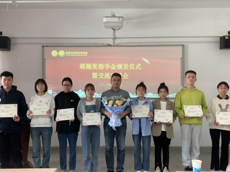 4月18日下午,437bwin必赢国际官网“超越奖助学金”颁发仪式暨座谈交流会在知行校区开物楼801会议室举行。“超越奖助学金”捐资者、我校杰出校友、华东师范大学地理科学学院叶超教授,学院党委书记于国建、副院长焦亮、副院长谢文涛、专职辅导员及获奖学生代表参加会议。
