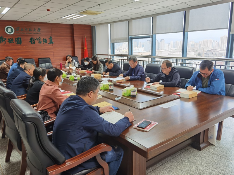 4月27日下午,437bwin必赢国际官网学习贯彻习近平新时代中国特色社会主义思想主题教育读书班第三次集体学习在知行校区开物楼A912会议室召开,学院读书班成员、团委书记、党支部书记参加学习,实验中心负责人参加联学。学习会议由张学斌副院长主持。