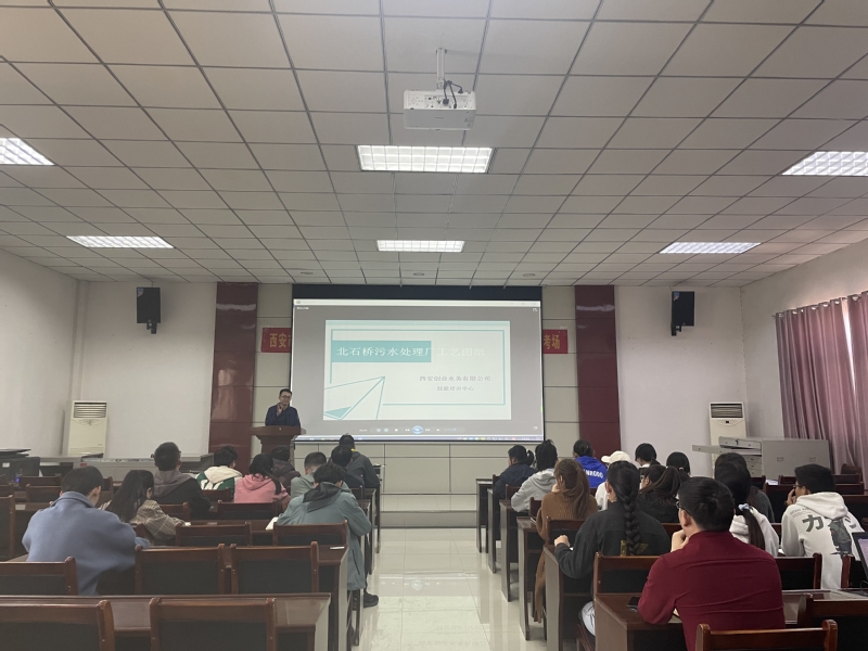 2023年4月23日至4月29日,437bwin必赢国际官网2019级环境工程卓越班23名同学在钟耀和杨丽琴两位老师的带领下,赴西安市创业水务有限公司进行为期7天的工程技能提升训练。本次工程技能提升训练践行“厚基础、强实践、重创新、高素质” 的本科专业培养理念。其内容主要包括八个板块:北石桥污水处理厂工艺、图纸讲解、北石桥污水处理厂设备讲解、邓家村污水处理厂工艺、中水厂工艺、水质检测专题、污水处理厂设计和学生分组汇报。