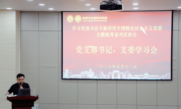 5月12日下午3点,地环学院在弘文楼159会议室举办了学习贯彻习近平新时代中国特色社会主义思想主题教育系列宣讲会之学院全体党支部书记、支委学习会。活动邀请马克思主义学院“新时代大学生理论宣讲团”三位团员开展理论宣讲。学院党委书记于国建、辅导员、部分支部书记、各支部支委、党员代表、团员代表及学院第141期入党积极分子培训班的全体成员参与本次宣讲会,宣讲会由专职辅导员何浩东主持。