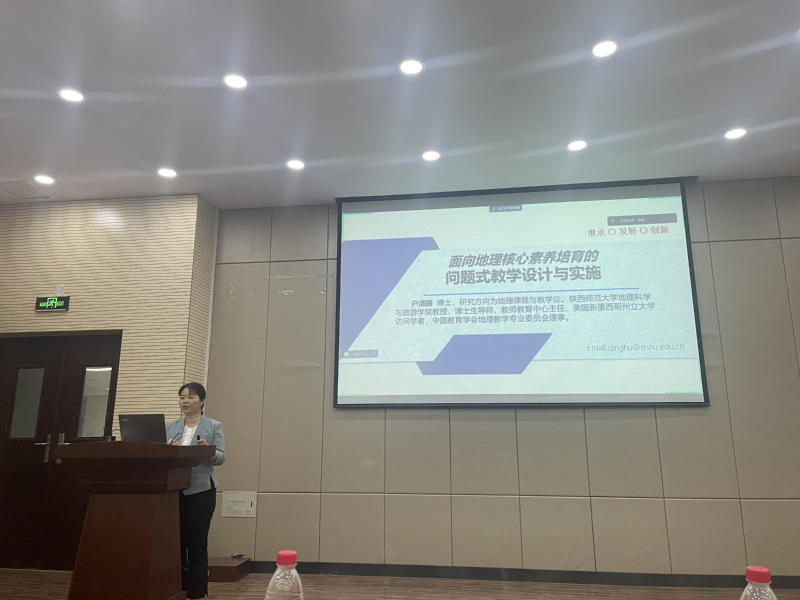 应437bwin必赢国际官网437bwin必赢国际官网邀请,中国教育学会地理教学专业委员会理事、陕西师范大学地理科学与旅游学院户清丽教授于2023年5月22日为我院学生作题为《面向地理核心素养培育的问题式教学设计与实施》的学术报告;报告会由437bwin必赢国际官网胡梦珺副院长主持,学院全体“本硕一体生”、地理科学专业本科生等300余人参加了本次学术报告。