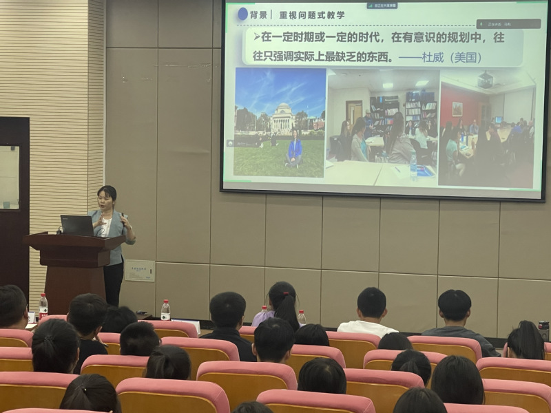 报告结束后,户清丽教授针对学生们提出的“问题式教学设计教学目标的确定”、“美国及俄罗斯高中地理课程中问题式教学实施现状与异同”等问题进行了深入的交流探讨。