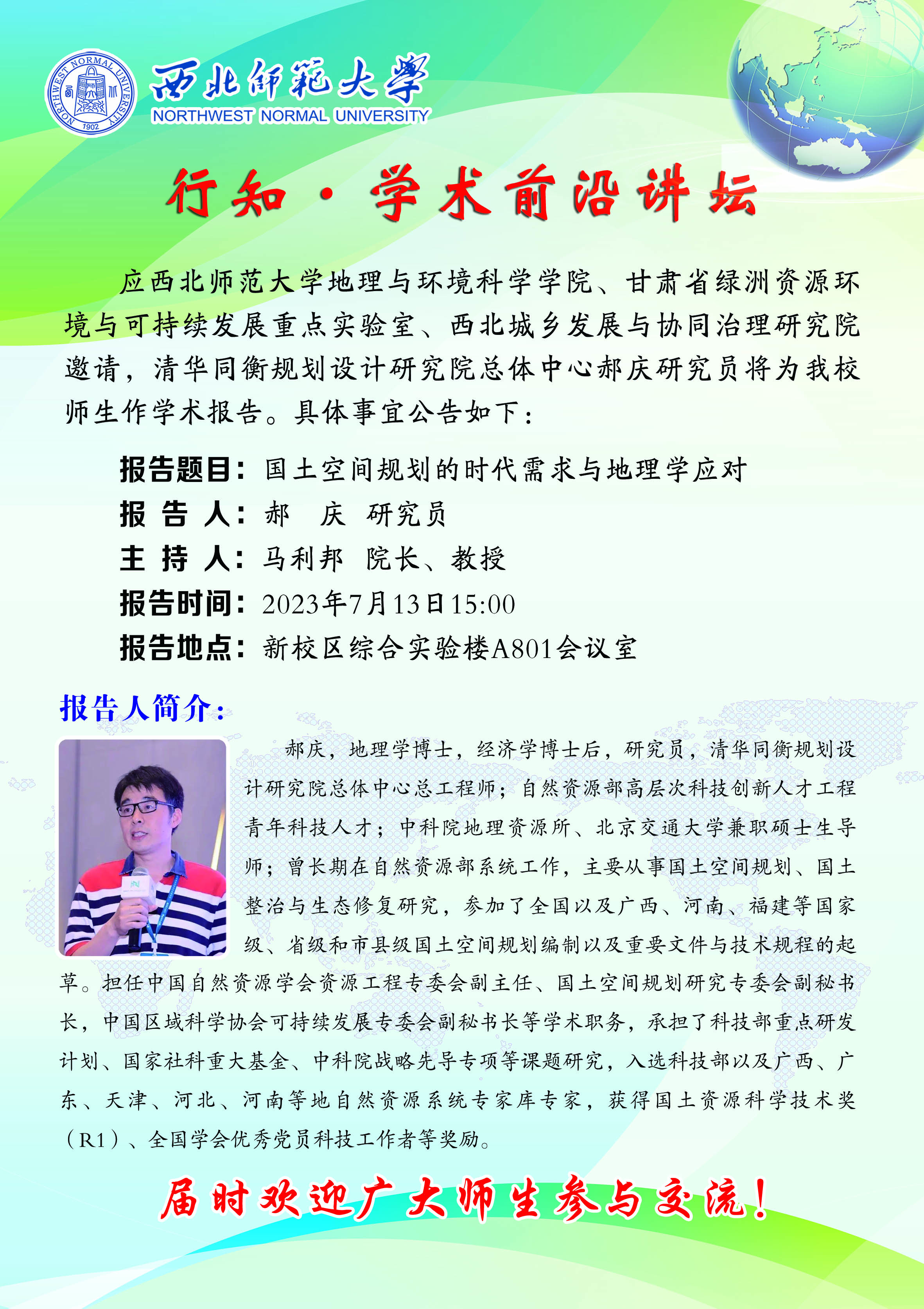 地环学院行知•学术前沿讲坛 2023-08期:国土空间规划的时代需求与地理学应对