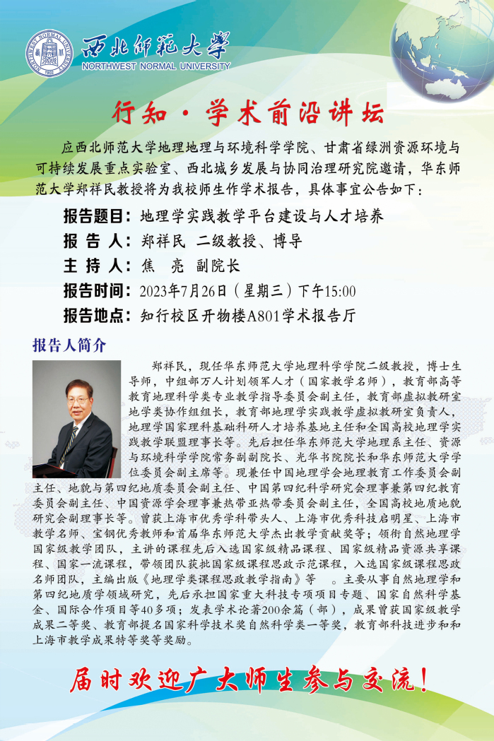 地环学院行知•学术前沿讲坛 2023-09期:地理学实践教学平台建设与人才培养