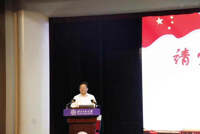 会上,于国建书记做了“请党放心,强国有我”的专题报告。带领同学们一起回顾了中国共产党的百年奋斗史和党的历次代表大会的伟大精神,系统地讲述了党的二十大精神深刻内涵和对青年人的殷殷期待。报告最后,于国建书记要求全体新生:一是要坚定理想信念,真正了解党的光辉历史、感悟党的初心使命;二是要坚持读原文、读原著,在书籍中汲取精神力量,在实践中赓续共产党人的精神血脉;三是要合理规划大学时光,学会磨练意志、自主学习、创新学习、全面学习,努力成为中国特色社会主义事业的合格建设者和可靠接班人。