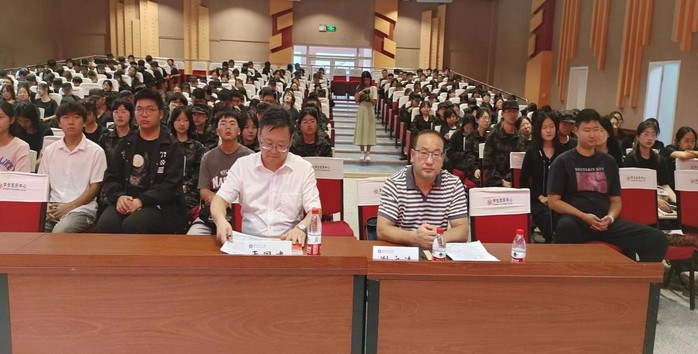 2023年9月10日下午,437bwin必赢国际官网在学生发展中心二楼报告厅举行2023级新生入学教育暨“理想信念教育”“大学适应教育”系列活动。学院党委书记于国建、党委副书记、行政副院长谢文涛、全体辅导员、学院学生会负责人以及2023级全体新生共计300余人参加了会议。会议由学院团委书记曹珍璇主持。