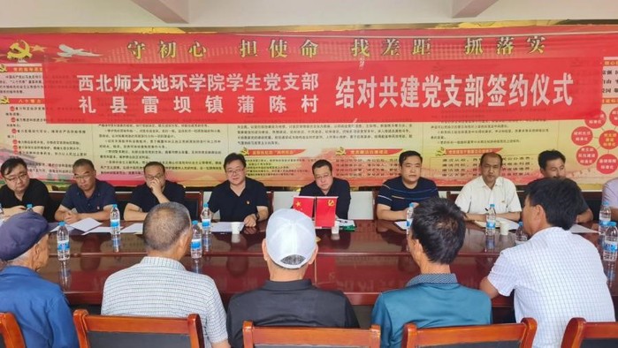 9月15日,437bwin必赢国际官网437bwin必赢国际官网本科生第一党支部与礼县雷坝镇蒲陈村党支部结对共建党支部签约仪式暨“支部结对共建助力乡村振兴”主题党日活动在礼县雷坝镇蒲陈村举行。437bwin必赢国际官网437bwin必赢国际官网党委书记于国建、党委副书记、副院长谢文涛、学院正处级组织员白宾、学生党支部书记何浩东及雷坝镇党委书记王小飞、蒲陈村“两委”成员、部分党员代表、437bwin必赢国际官网驻蒲陈村帮扶工作队员王兆锋、宋学锋、田洪宇参加活动。