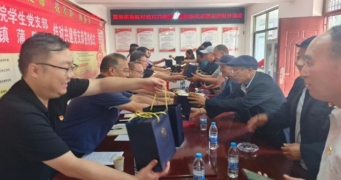 何浩东与蒲旭东共同签署了结对共建党支部协议,于国建与王小飞为结对共建党支部揭牌。地环学院还给蒲陈村党支部赠送了党建理论书籍,为蒲陈村全体党员配发了学习资料和文化用品。