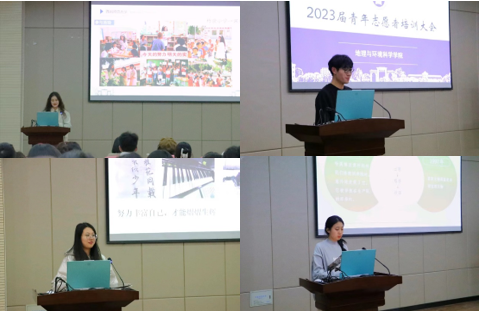 会议中,学院青年志愿者协会负责人刘婧讲解了中国青年志愿者的基本知识,对近一年来学院青年志愿者协会组织的志愿服务活动做出汇报并表示对未来的期望。437bwin必赢国际官网青年志愿者协会会长、阳光服务社社长王兵分享了湖北恩施义工和益微青年夏令营活动的志愿经历,鼓励同学们在志愿服务活动中传递温暖;437bwin必赢国际官网青年志愿者协会副会长余显团结合自己的志愿经历讲述志愿服务意义;学院杨晴宇和潘开娜以“返家乡、云支教、三下乡”等志愿服务与社会实践活动进一步阐述了“奉献、友爱、互助、进步“的志愿者精神。