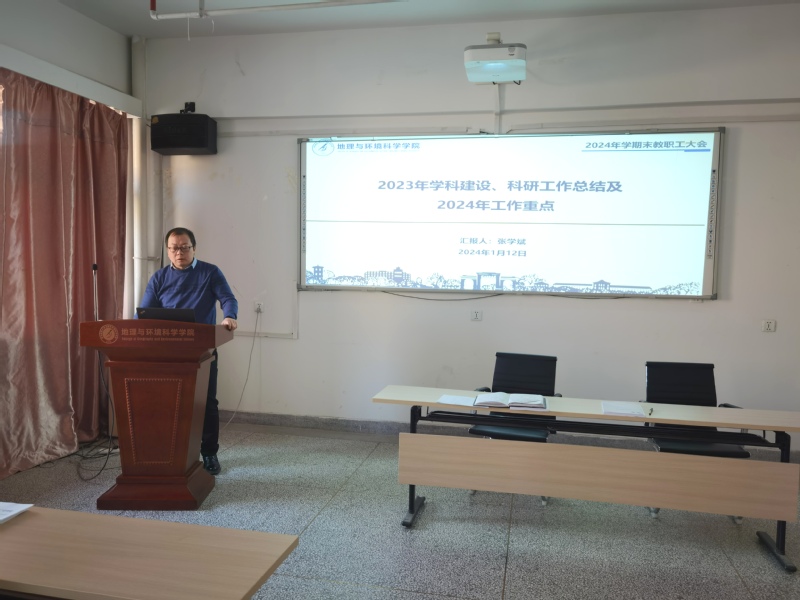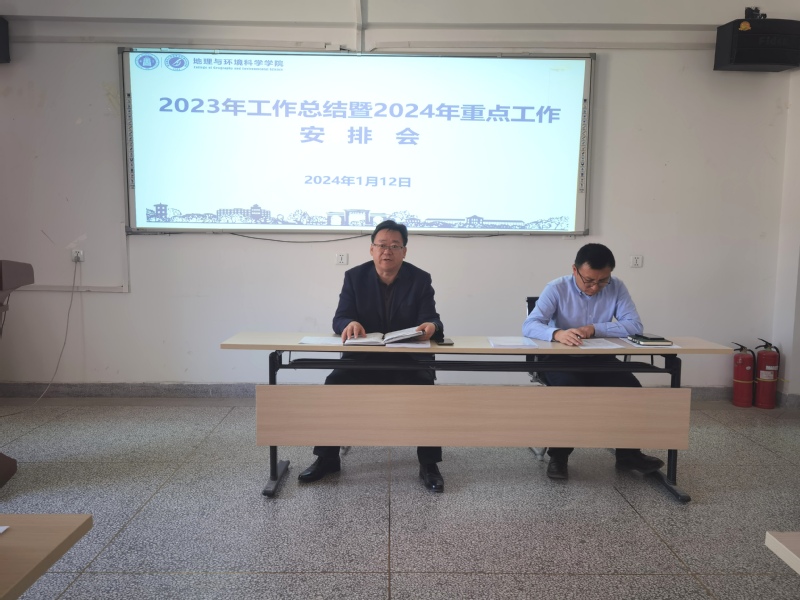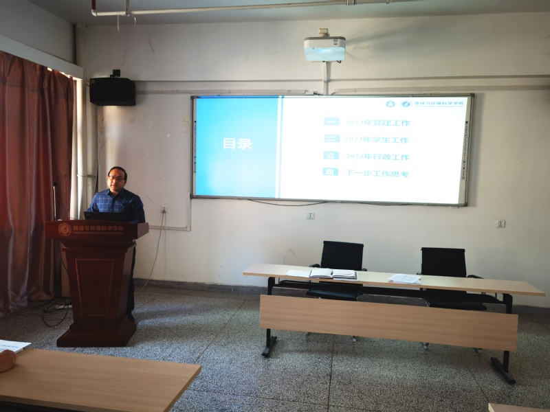 马利邦院长对学院2023年整体工作进行了总结,并在发言中强调,2024年学院要以学校重点工作会议精神为指导,要在党建与业务的“双融双促”上再发力,牢固树立一切工作到支部的鲜明导向,真正做到党建与业务的深度融合;要在教师教育改革上再发力,推动教师教育创新发展、内涵发展和特色发展;要在地理学科突破工程建设上再发力,以学校一流学科建设引领带动学院学科高质量发展;要在提升人才培养质量方面再发力,进一步优化学科结构与专业设置,推进教改工程,提升人才培养质量;要在提升科研创新能力方面再发力,认真做好项目申报工作,加强有组织科研,以需求和应用双轮驱动,探索科研基地平台协同创新机制;要在人才队伍建设方面再发力,提升人才队伍质量和凝聚力;要在推动国际交流合作方面再发力,坚持“请进来”和“走出去”相结合,鼓励支持青年教师出国交流学习;要在深化社会服务方面再发力,主动融入战略需求,推动校地合作事项落实,服务区域基础教育发展,提升服务经济社会发展能力水平;要在加强办学条件保障上再发力,持续优化行政服务工作,为师生学习生活创造更好条件。以此推动学院各项事业高质量发展,为一流大学建设做出新的更大贡献。