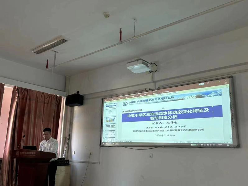 2024年1月14日,应437bwin必赢国际官网437bwin必赢国际官网、甘肃省绿洲资源环境与可持续发展重点实验室、西北城乡发展与协同治理研究院邀请,中国科学院新疆生态与地理研究所伊犁河流域生态系统研究站(天山积雪雪崩研究站)刘铁研究员、中国科学院新疆生态与地理研究所段伟利研究员分别做了题为《中亚大湖区水与生态系统相互作用和协同管理》、《中亚干旱区湖泊流域水体动态变化及驱动因素分析》的学术报告,报告会由我院副院长焦亮主持,学院部分老师、研究生线下参加了本次报告。