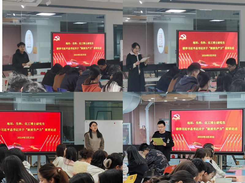 在集体联学会讨论中,地环学院赵学伟表示:“地理学‘探索自然规律,昭示人文精华’的学科宗旨可以更好地推进新质生产力的发展,而经济地理学可以针对新能源、新材料、先进制造、电子信息等战略性新兴产业的企业区位布局、产业园区规划和城市空间发展战略提供决策参考”;化工学院王海平同学立足科研角度和方向介绍了自己对“新质生产力”的理解,认为博士研究生在进行科研工作时要关注最新的科研动态,了解行业的前沿技术,通过系统的学习和实践掌握先进的技术和研发能力;生命科学学院张顺斌就新质生产力与生命科学、生物学的关系进行了分享,表示生命科学在农业生产、医疗健康领域应用、生物环境保护、能源开发、新材料等领域发挥的重要作用。