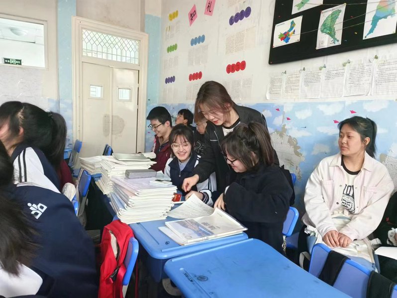 “从大一开始就让我们走进中学,强化我们的师范专业认同和职业目标,通过先见习、再研习、最后再实习的方法逐步提升我们的师范生专业技能,学校太暖心了……”23级地科2班张妙晗和徐慧同学一边忙着整理学生的作业,一边激动的说。
