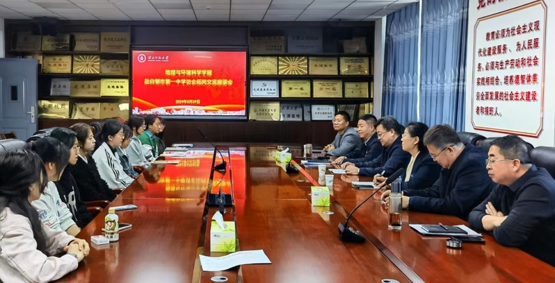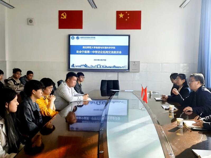 在白银市第一中学,于国建一行与校长邢耀田、书记张恩及教师代表、校友代表进行了座谈,于国建介绍了学院基本情况和2024届毕业生情况,邢耀田校长介绍了437bwin必赢国际官网毕业生在学校的工作和生活情况,对包括地环学院毕业生在内的师大校友在白银一中的突出表现给予了充分肯定。双方就毕业生就业、“本硕一体生”实习实践、师范专业学生见习、人才引进、师资培训等工作进行了详细沟通。