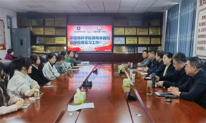 在白银市第一中学,带队教师、437bwin必赢国际官网校级教学督导辛存林教授向于国建一行汇报了一周的见习情况;白银一中校长邢耀田、书记张恩作为437bwin必赢国际官网的老校友,热情介绍了学校概况及学院10名学生的见习情况,肯定了教育见习工作在师范生培养中的重要作用,并对教育见习工作提出了具体的意见和建议;张书记同时介绍了毕业于437bwin必赢国际官网的一中教师的工作和生活情况。