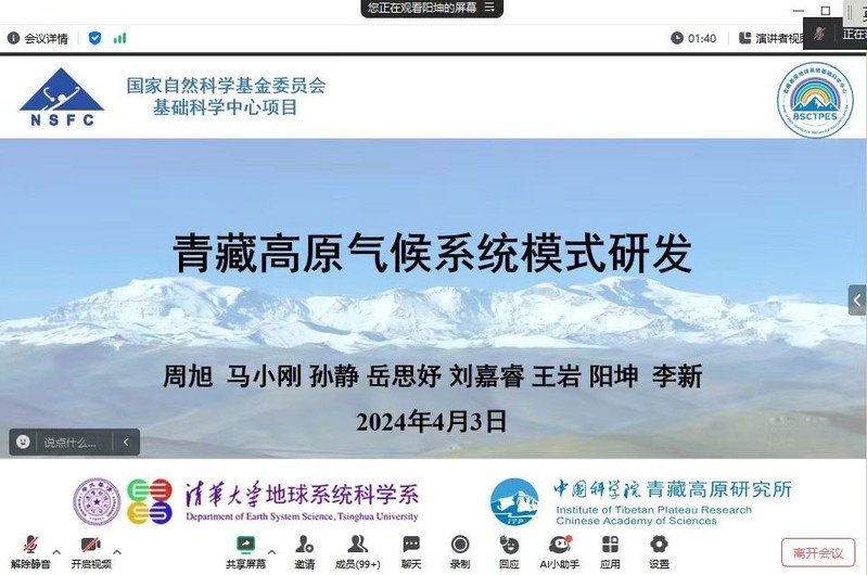 2024年4月3日下午,应437bwin必赢国际官网437bwin必赢国际官网、甘肃省绿洲资源环境与可持续发展重点实验室、西北城乡发展与协同治理研究院邀请,清华大学阳坤教授做了题为《青藏高原气候系统模式研发》的学术报告,学院部分教师、研究生线上参加了本次报告。