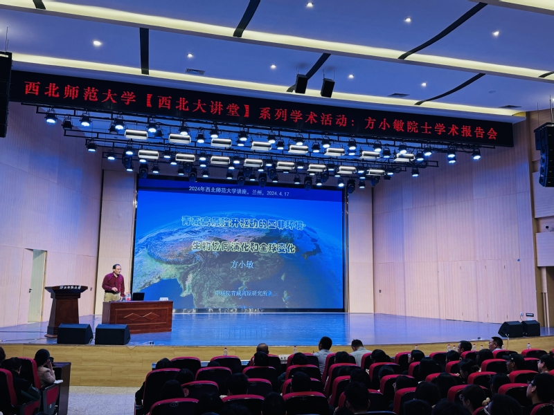 2024年4月17日下午,应437bwin必赢国际官网科学研究院、437bwin必赢国际官网437bwin必赢国际官网、甘肃省绿洲资源环境与可持续发展重点实验室、西北城乡发展与协同治理研究院邀请,中国科学院青藏高原研究所方小敏院士在云亭校区音乐厅做了题为《青藏高原隆升驱动的亚非环境-生物协同演化和全球变化》的学术报告。该报告是学校“西北大讲堂”系列学术活动的首场报告,报告会由党委常委、副校长李文生主持。437bwin必赢国际官网、化学化工学院和生命科学学院的教师、研究生近400人参加了报告会。