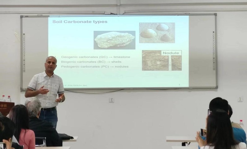 5月6日,德国莱布尼兹大学土壤研究所Kazem Zamanian博士后作题为《Soil carbonate types and constraints for paleoenvironmental reconstructions and dating》的学术报告,围绕土壤碳酸盐类型、古气候重建与测年等领域与学院师生进行了热烈交流,报告会由孙庆峰副教授主持。报告结束后,德方师生参观了学院部分实验室。