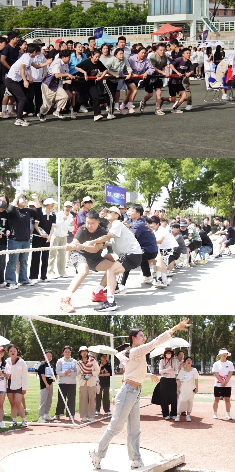 在2024年校运会运动会上,地环学院师生团结协作,努力拼搏,在师生团体协作、男女团体、男子团体以及女子团体比赛项目中都获得了优异成绩!这些优异成绩的获得离不开每一位运动员的付出,也不离开120余名同学的后勤保障。在这场运动会中,地环在学院每一位同学都积极工作,不推脱不抱怨,全身心参与到这场运动会中,为这场运动会添上了浓墨重彩的一笔!未来的日子让我们继续奋勇前行!