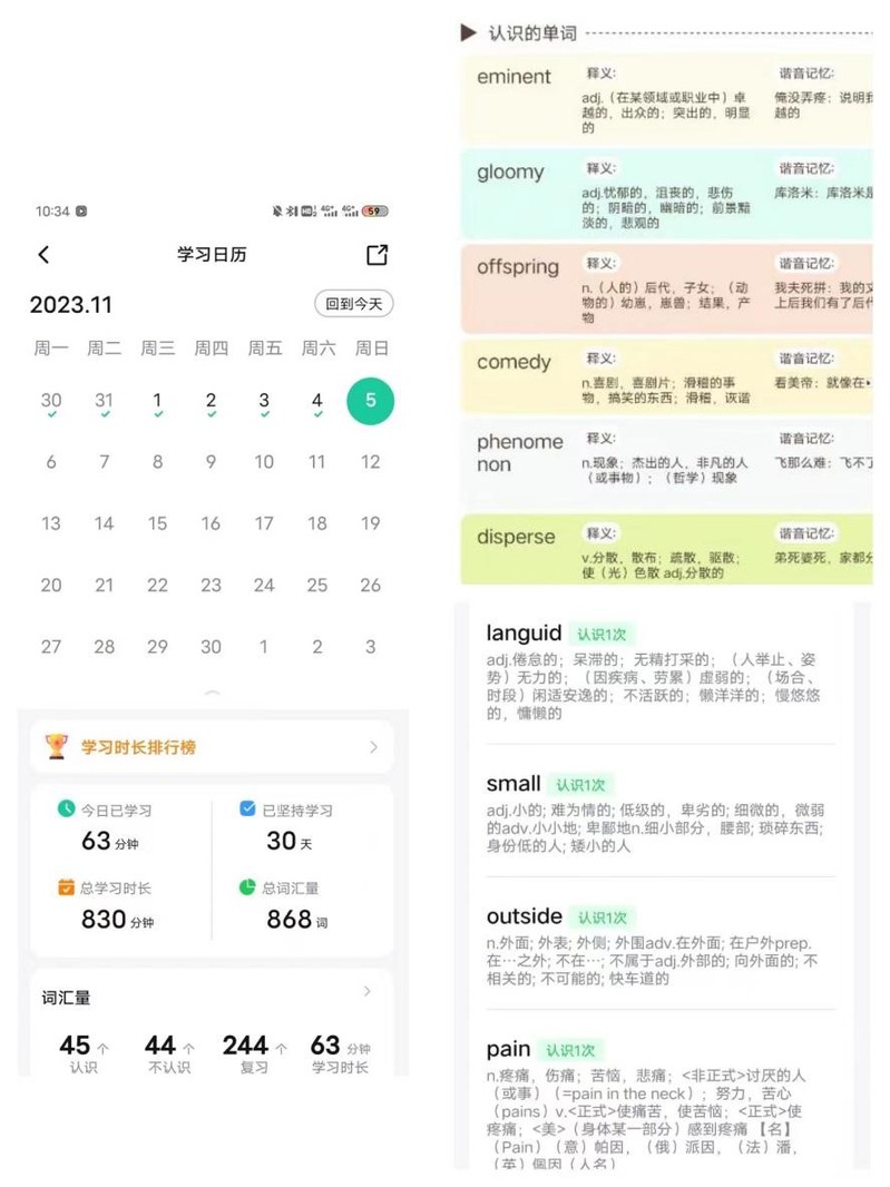 单词背诵项目通过提交英语“电子单词”或“纸质单词”的背诵图片进行打卡,在打卡过程中各位同学积极交流与分享自己的学习经验,互相学习,共同进步。更有同学通过“趣味记单词”的方式进行打卡,增加了活动的趣味性。活动打卡率始终保持在90%以上。