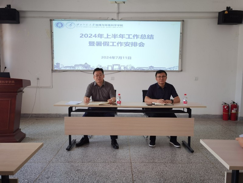 会上,2024年新入职的李亮亮、陈磊、何瑶、冯姣姣、张大弘5位博士及从知行学院转入学院的孔旭梅老师进行了自我介绍,学院全体教职工对六位老师表示热烈欢迎。胡梦珺副院长安排了本科教学审核评估及师范专业认证相关工作,安排了暑假野外实习和专业实习相关工作,并对期末考试试卷批阅、成绩录入、课程材料提交、新入职教师双导师配备等工作进行了安排;潘竟虎副院长对暑假期间实验室安全管理工作进行了强调;姚晓军副院长对暑假期间留校研究生管理、专硕研究生校外实习、研究生管理系统更新使用等相关工作进行了安排;张学斌副院长对近期学校下发的相关科研管理规定及办法进行了说明,并对暑假期间各类科研项目准备、绿洲科学团队成果推介宣传等相关工作进行了安排;谢文涛副书记就2024届毕业生就业工作、暑假社会实践、暑假期间留校学生管理及下学期新生入学准备等重点工作进行了安排。