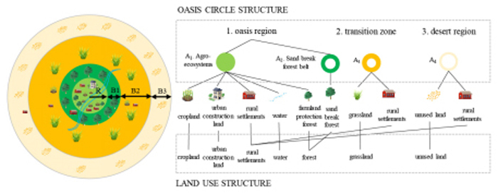 图1 绿洲圈层结构及其土地利用类型构成