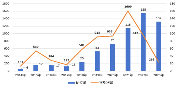 图3 2014-2023年地球科学发文量及被引次数
