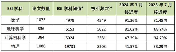 表6 我校2024年7月与2023年7月ESI学科接近度对比