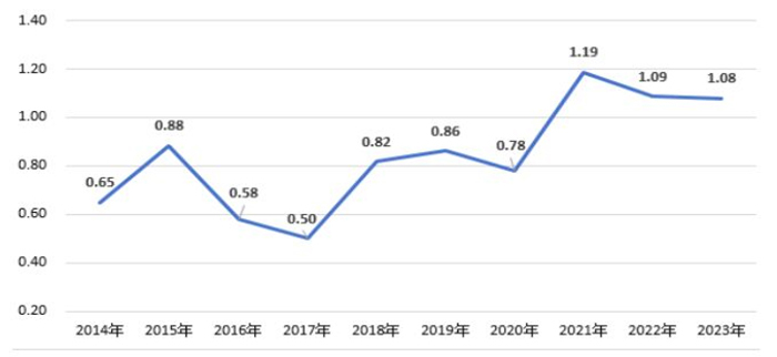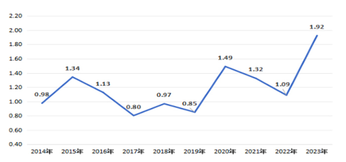 图4 2014-2023年地球科学论文CNCI值
