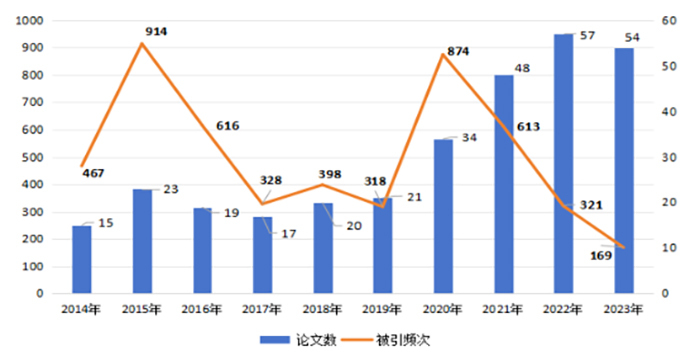 图1 2014-2023年环境学/生态学论文产出及被引频次分布